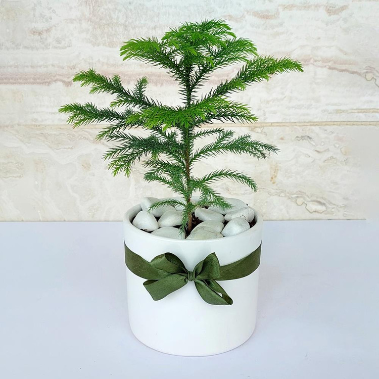 کاج مطبق گیاه آپارتمانی دکوراتیو همراه گلدان سرامیکی
