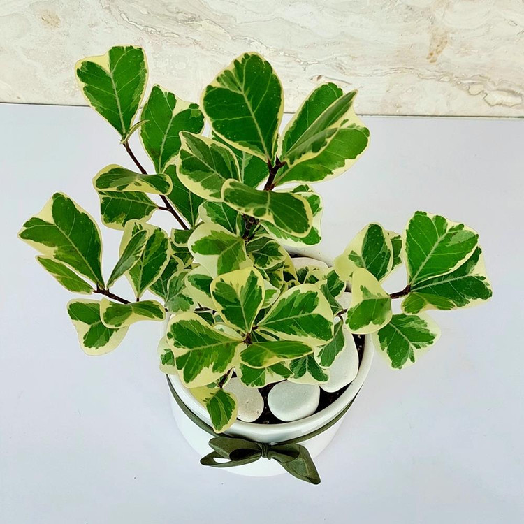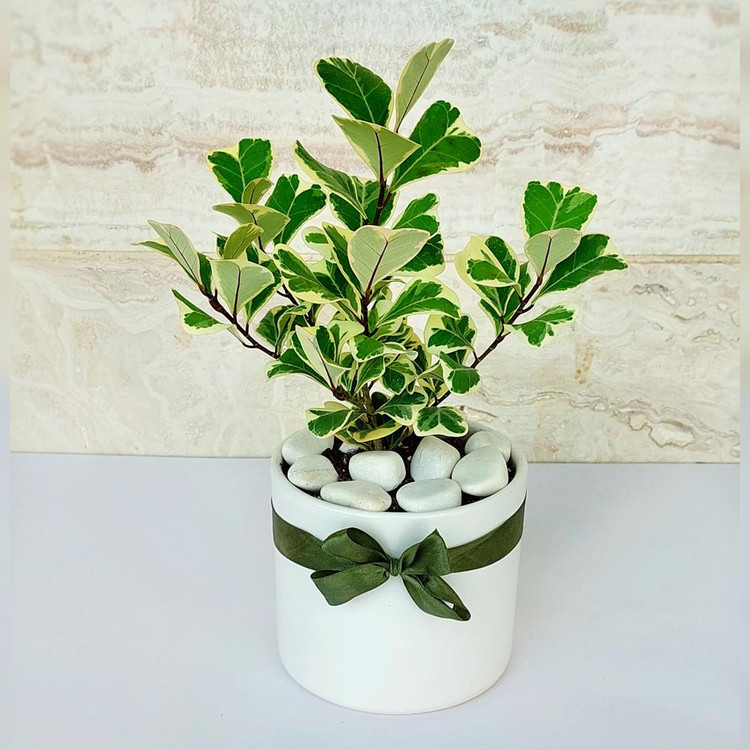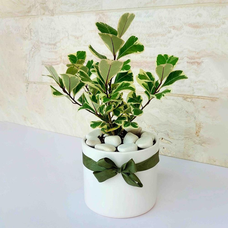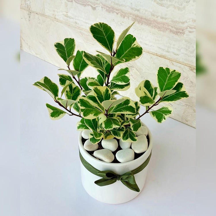 فیکوس دلتا ابلق گیاه آپارتمانی خاص و شیک همراه گلدان سرامیکی