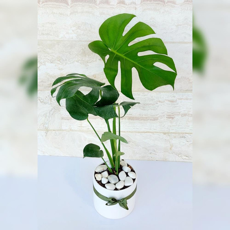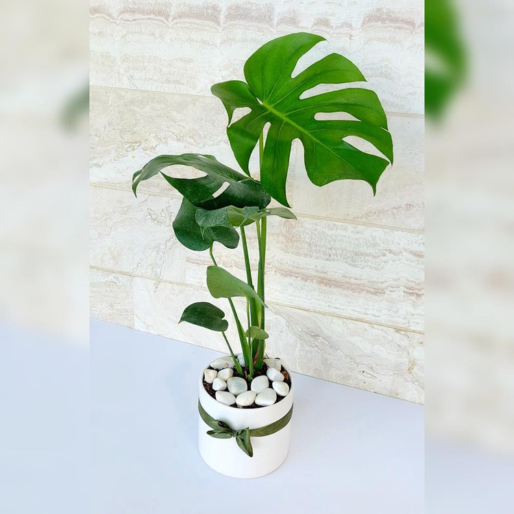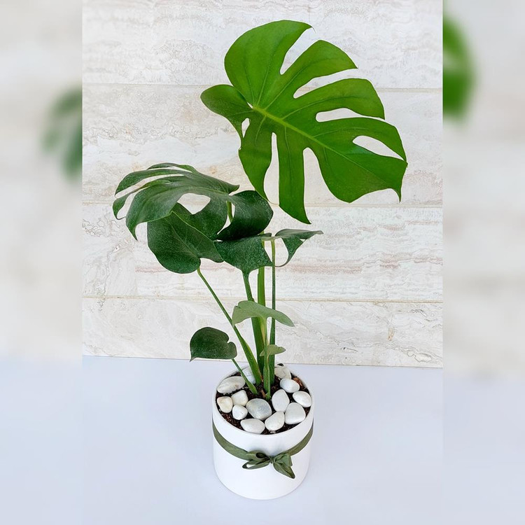 مونسترا برگ انجیری گیاه آپارتمانی مقاوم و زیبا همراه گلدان سرامیکی