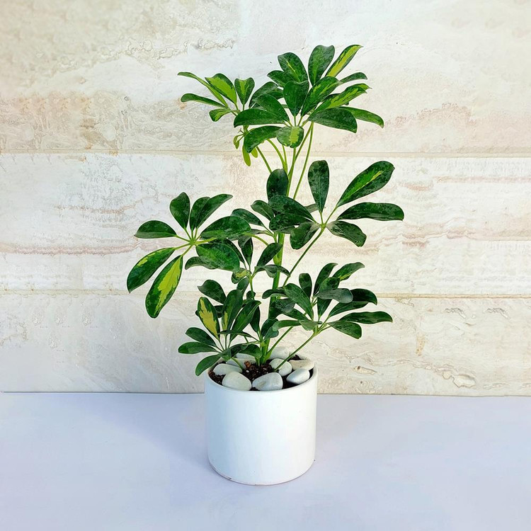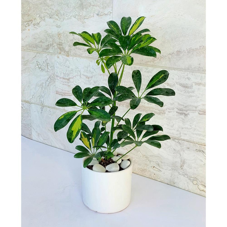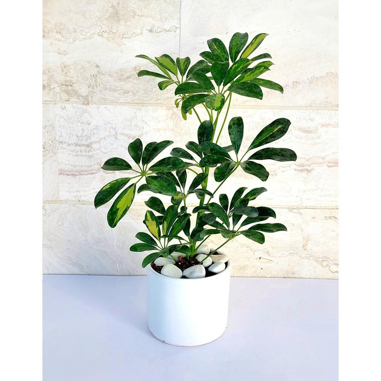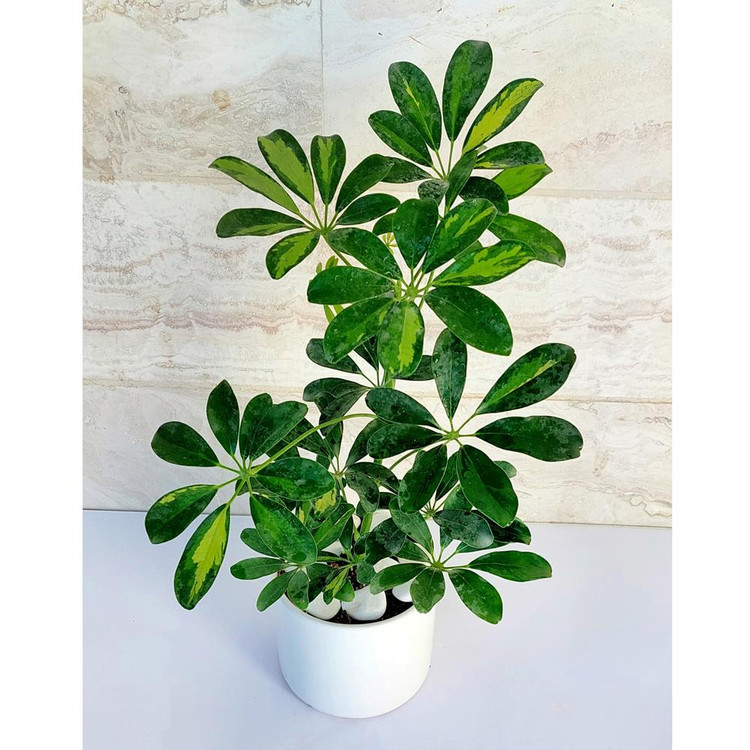شفلرا ابلق گیاه آپارتمانی زیبا و مقاوم با گلدان سرامیکی
