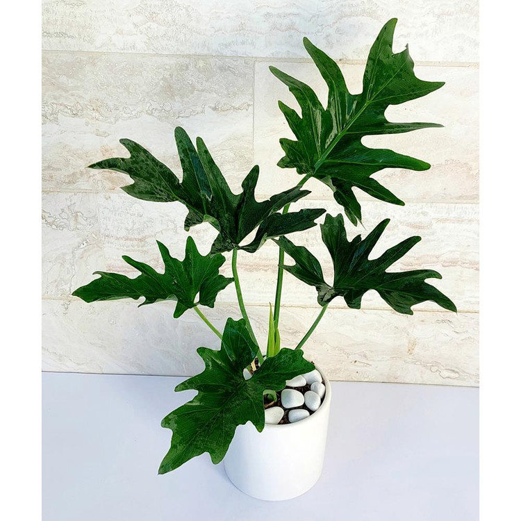 برگ انجیری فر ( فیلودندرون سیلوم ) گیاه آپارتمانی جذاب همراه با گلدان سرامیکی