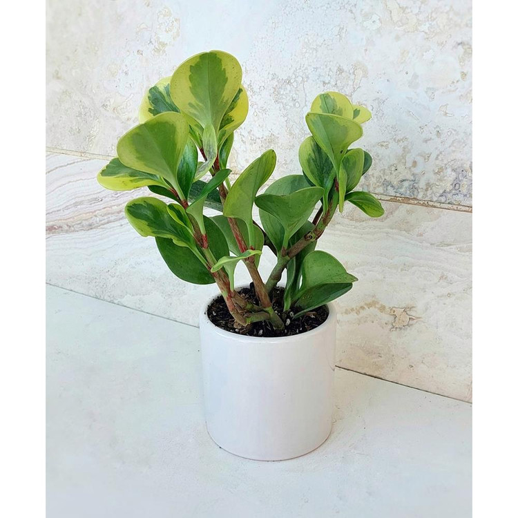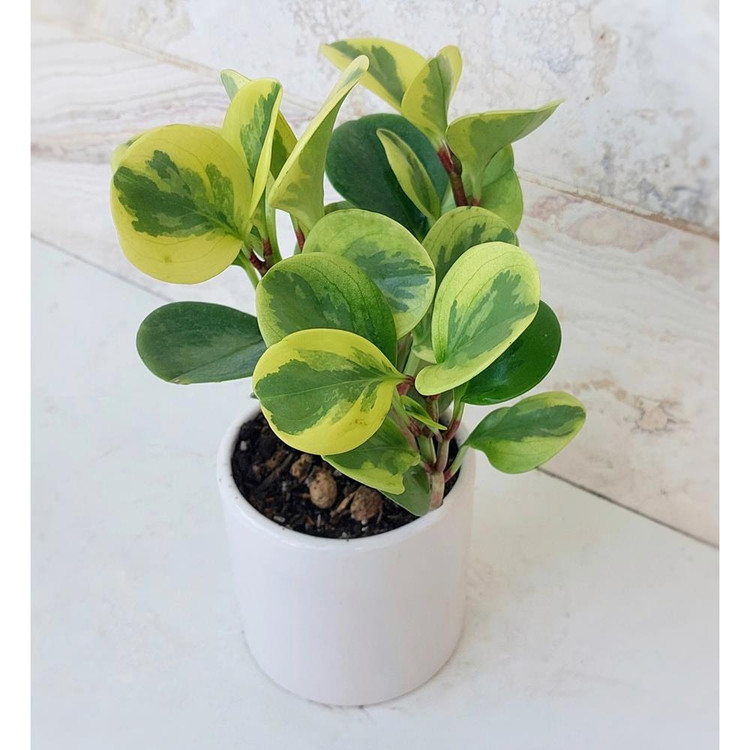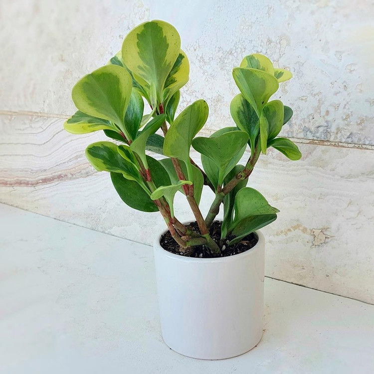 پپرومیا قاشقی ابلق گیاه آپارتمانی زیبا با گلدان سرامیکی