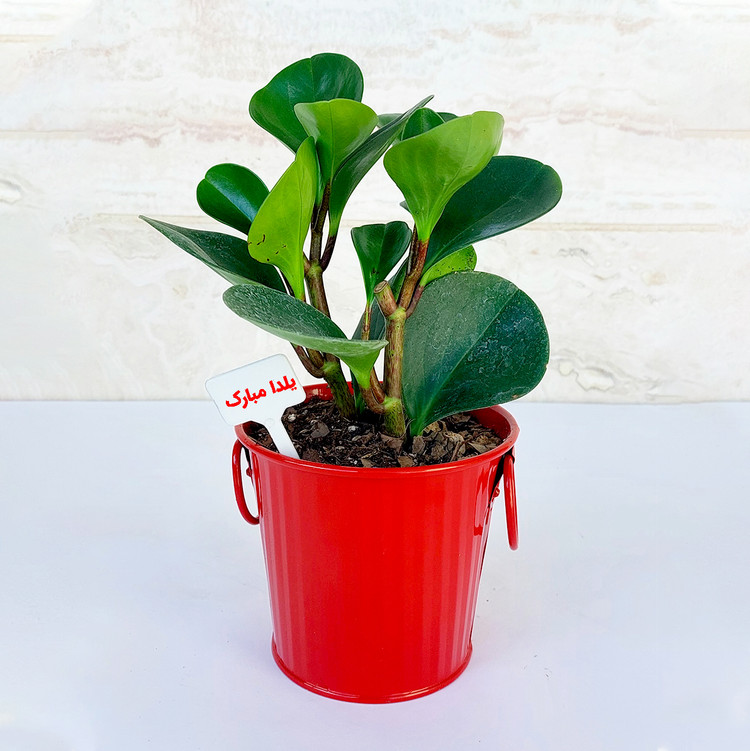 پپرومیا قاشقی سبز گیاه آپارتمانی مقاوم به همراه گلدان فلزی هدیه یلدایی زیبا و خاص