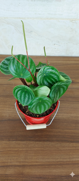 پپرومیا هندوانه گیاه آپارتمانی زیبا به همراه گلدان فلزی هدیه یلدایی زیبا و خاص