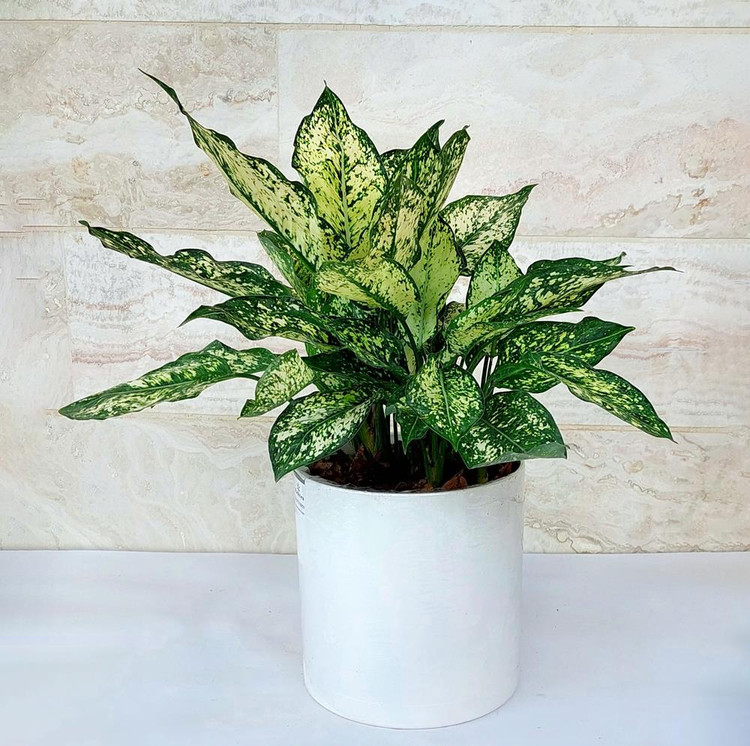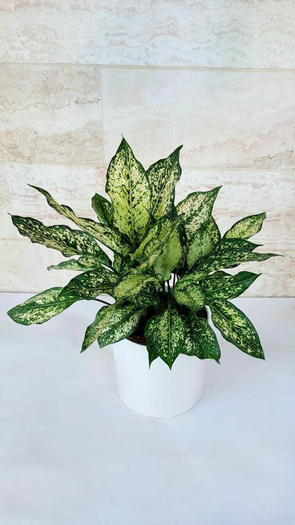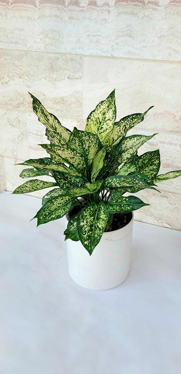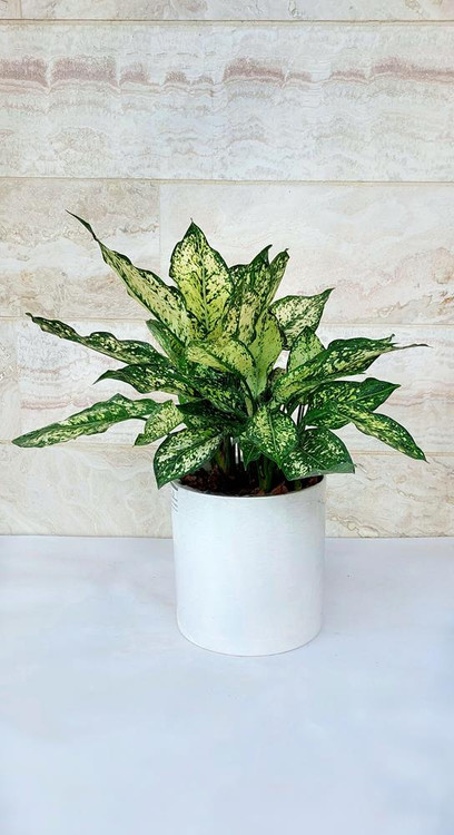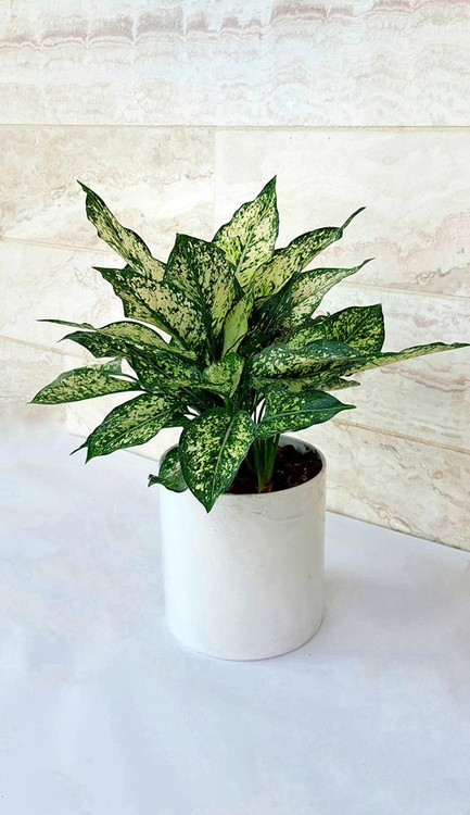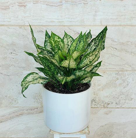 آگلونما سفید گیاه آپارتمانی زیبا به همراه گلدان پلیمری