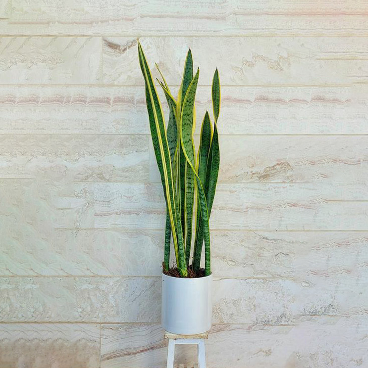 سانسوریا شمشیری ابلق با گلدان پلیمری گیاه آپارتمانی مقاوم و دکوراتیو