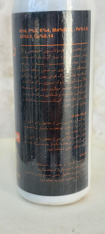 * میزان مصرف: 2.5 سی سی (میلیلیتر) از محلول را در 1 لیتر آب حل کنید.