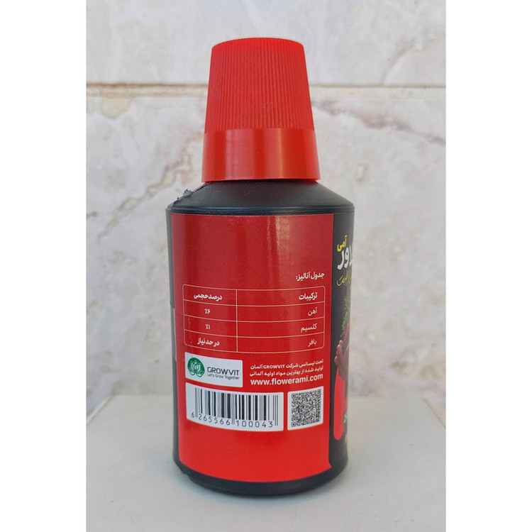 * کود مایع آهن فلاور آمی: یک درب قوطی در 4 لیتر آب، هر دو هفته یکبار.