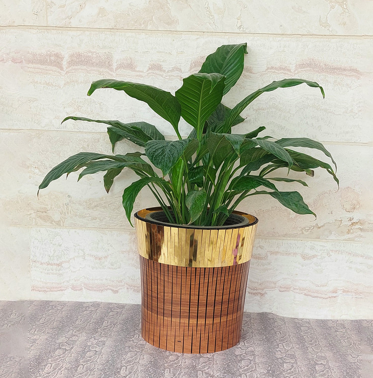 اسپاتی فیلوم گیاه آپارتمانی همراه با گلدان چوبی