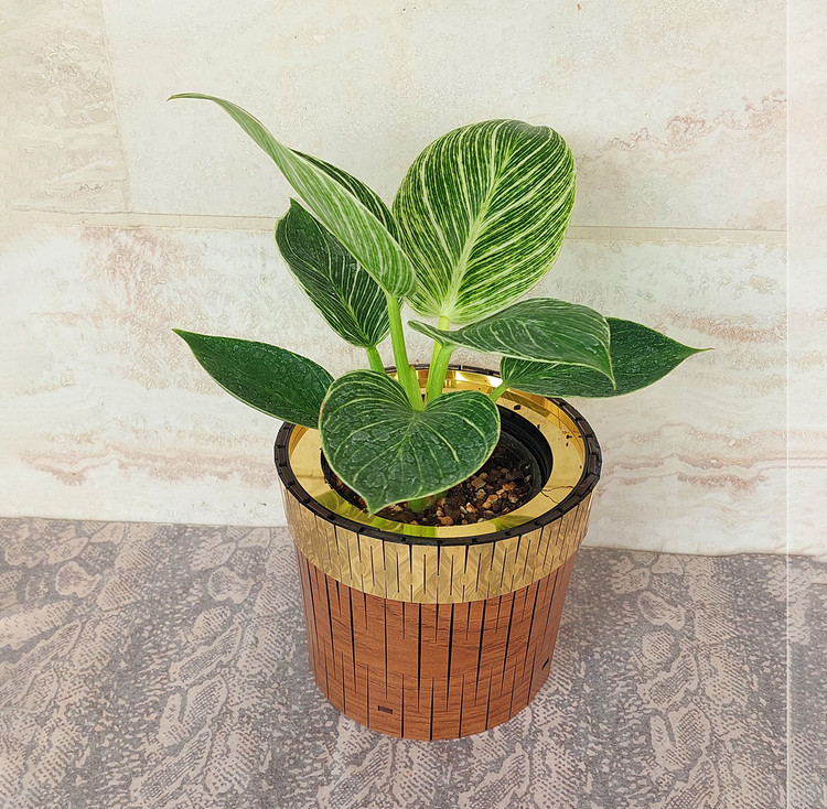 فیلودندرون برکین گیاه آپارتمانی همراه با گلدان چوبی