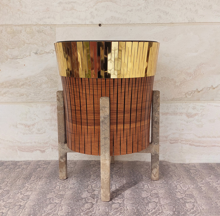 جنس گلدان چوبی می باشد لب گلدان طلایی براق است .